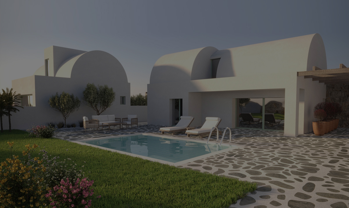 Le programme comprend la construction et réalisation de 4 villas de luxe dans le style typique des Cyclades grecques.